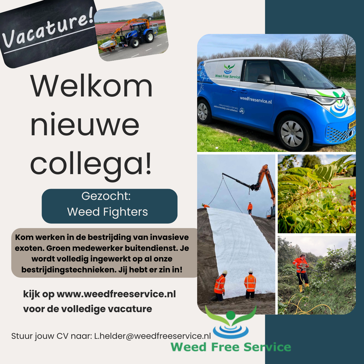 Open sollicitaties kunt je sturen naar l.helder@weedfreeservice.nl